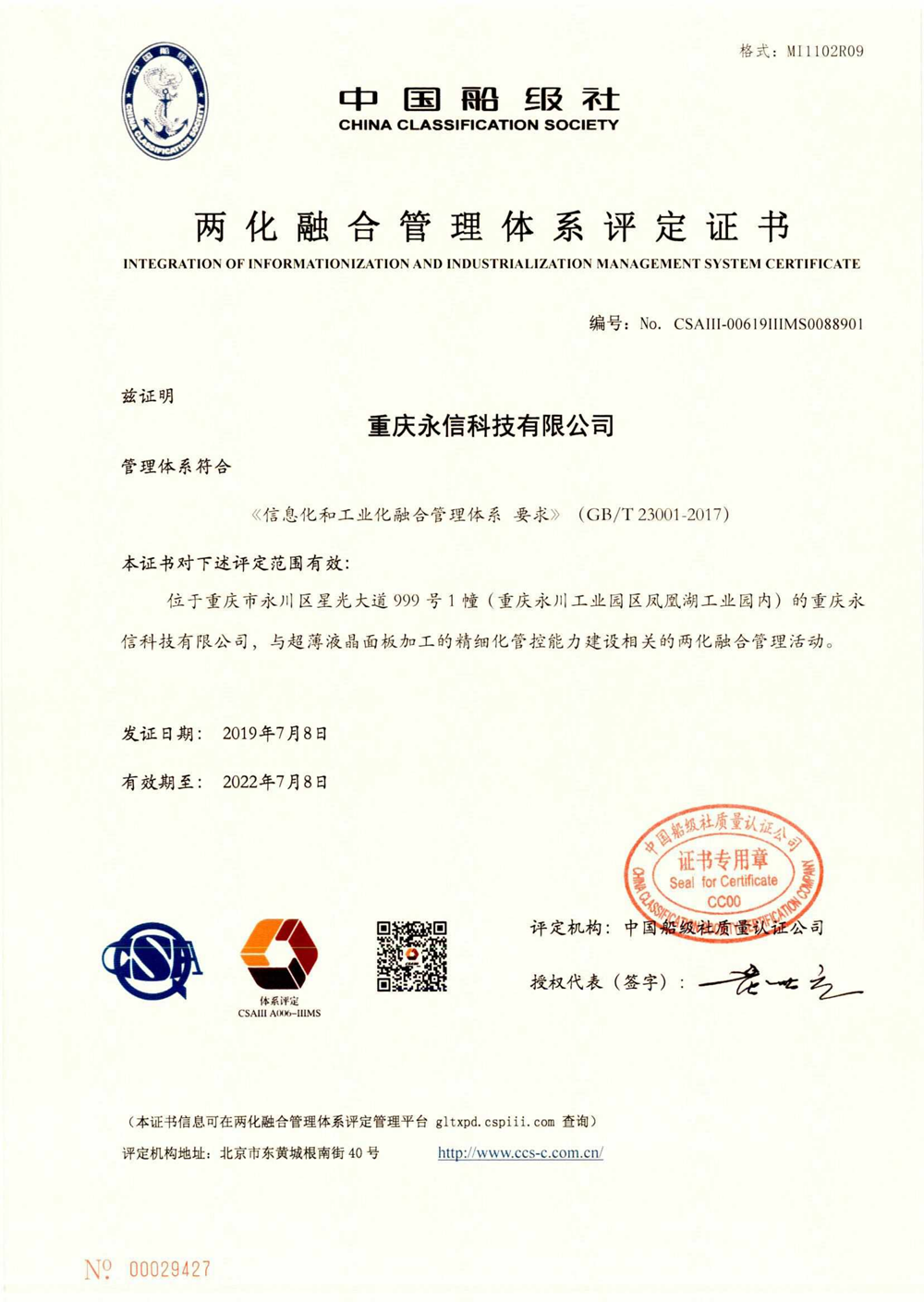 二化融合管理証明書